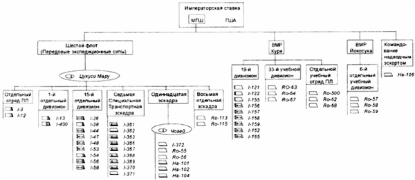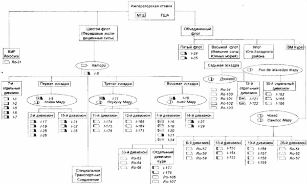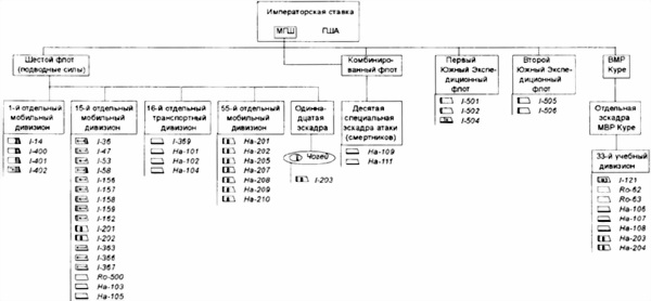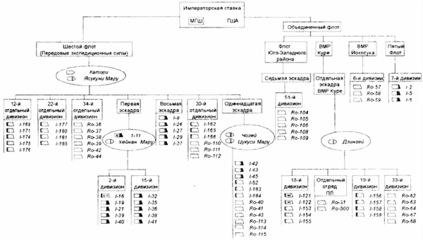 Схема боевой организации подводных лодок Императорского флота по состоянию на 1.01.1943 г.
