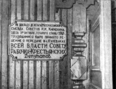 В октябре 1917 года по приезде делегата II Всероссийского съезда Советов большевика И. И. Кирюхина на совместном заседании Кулебакского Совета рабочих и крестьянских депутатов 31 октября (по старому стилю) в селе Кулебаки была установлена Советская власть, установлена значительно раньше, чем в других городах Нижегородской губернии.