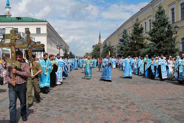 Во время крестного хода 21 июля 2012 года. Слева здание военного училища, справа конторы присутственных мест.