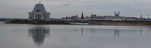 Шоссе, поднятое на 56 метров и такой же ширины, лежит выше уровня самых высоких паводков Волги и даже в самые, что ни на есть, сильные разливы служит доступным и надежным проездом от реки в город. Если не брать в расчет шоссе, Казань будто стоит среди огромного озера и со своим старым кремлем, не тронутым ни одним пожаром, и колокольнями 62-x храмов являет вид один из самых фантастических».