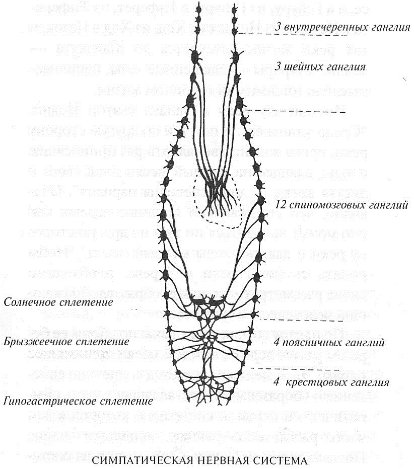 Этим центром является солнечное сплетение образование, составляющее часть симпатической нервной системы, о которой я вам часто рассказывал раньше, используя знание Посвященческой Науки. Симпатическая система состоит из центров, расположенных на разных уровнях: от головного мозга до нижнего окончания позвоночного столба; а также из периферической её части, образованной нервами и ганглиями, соединёнными между собой каналами нервных волокон, которые называются сплетениями. Находящееся на уровне желудка солнечное сплетение как раз одно из них.