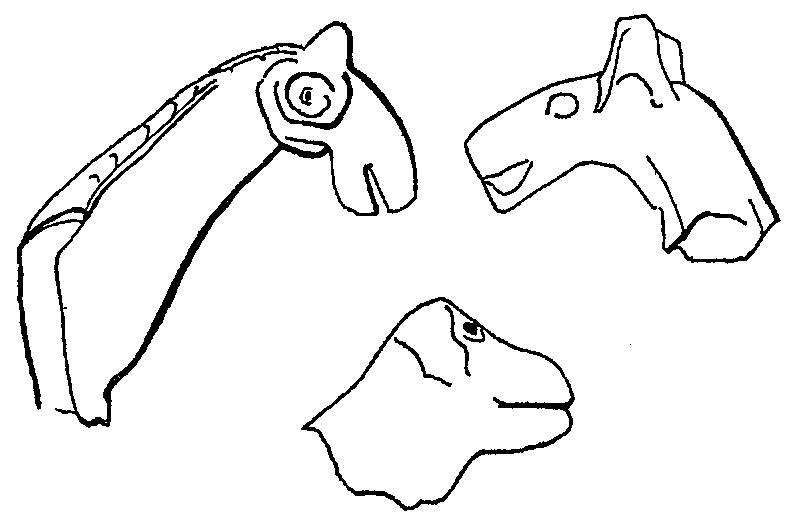 Рис. 33. Ручки сосудов в форме голов животных. Троя VI