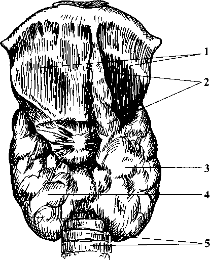 Также и с щитовидной железой. В области глотки от пищеварительной трубки вырастает своеобразный мешочек. Это образование отодвигается кпереди. А канал, ведущий из глотки в этот мешочек, постепенно зарастает. И поскольку устье этого канала начинается у корня (основания) языка, то в последствии там можно найти вполне заметную ложбинку (ямочку). Её называют слепое отверстие(рис. 1).