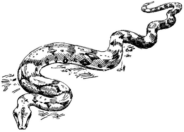 В приключенческих книгах часто можно прочесть о грозе джунглей боа, второй по величине змее Южной Америки. Но что бы ни писалось в книгах, она совершенно безопасна для человека. Предельная длина боа около пяти метров, окраска очень хороша, и на неё усиленно охотятся из-за кожи.