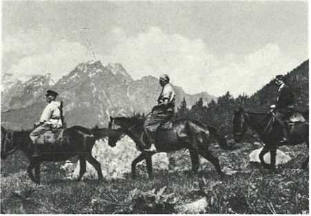 Я еду в горы в гости к кавказским турам. Меня сопровождают директор Тебердин-ского заповедника и егеря