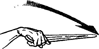 Удар обратной (лучевой) гранью клинка. Наносится слева от пояса или от бедра (как правило с подшагом). Подоплека медведь, отсечка или
