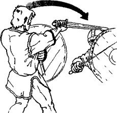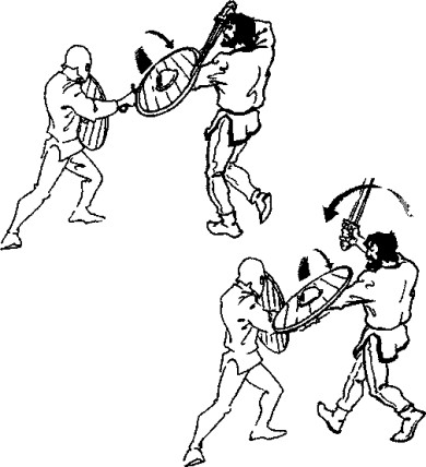 клинка, шит накрывает атакующую руку и сворачивает ее вниз-в сторону. В образовавшийся про-гал наносится мошный контратакующий удар.