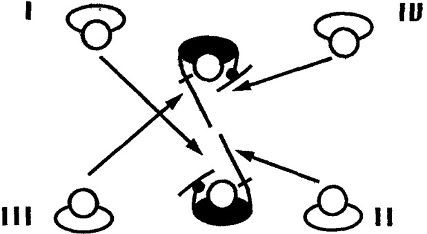 Третий и четвертый, стоящие на другой диагонали, контролируют попадания по другому бойцу.
