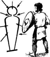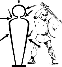 так как противники весьма разнообразны и по мышлению, и по стилю. Их действия вряд ли будут строиться исключительно по канонам, и удары будут наноситься не по известной вам точной траектории, а из областей в 50-70 см. Поэтому гораздо целесообразней строить свои действия, учитывая секторы возможной атаки.