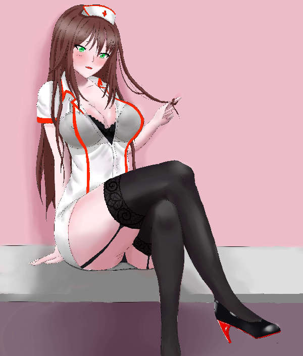 Из здания меня вывела ещё одна симпатичная медсестра, одетая в такой же короткий халат и ажурные чулки. Её грудь была поскромнее, чем у Оли, но тоже внушительная. Расстегнутая верхняя пуговичка на халатике позволяла бросать взгляды на соблазнительные формы, затянутые в кружевное бельё ярко-малинового цвета.