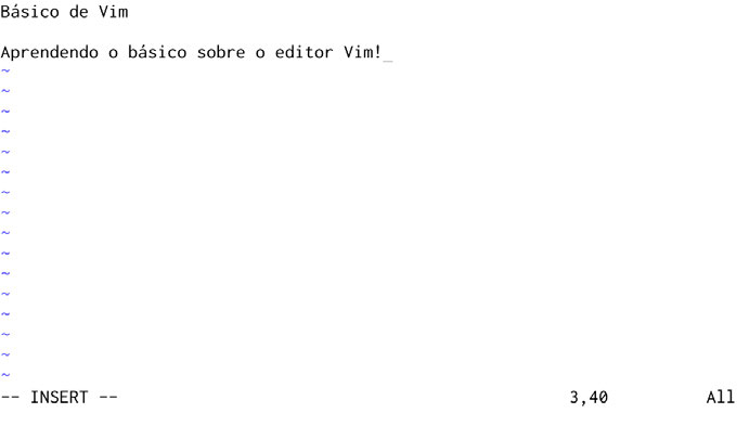 Na sequência veremos como alternar para o modo de inserção, escrever em um