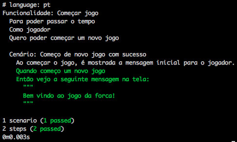 Ao rodar o Cucumber agora, vemos que agora ele está no verde!