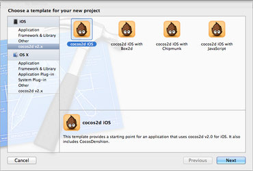 seção iOS selecione a opção cocos2d v2.x.