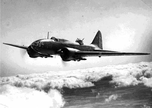 Бомбардировщик Ил-4 в полете.