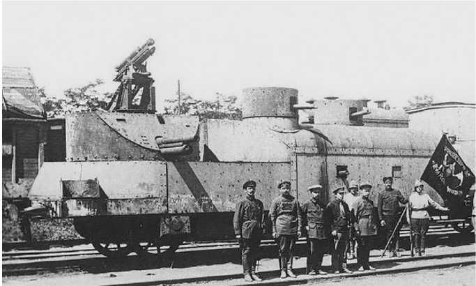 Красные у оставленного Русской армией лёгкого бронепоезда «Волк»