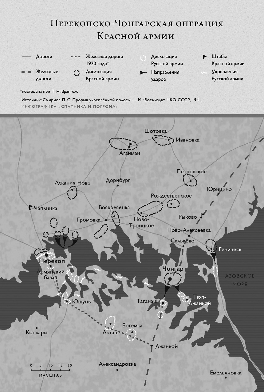 «Положение на фронте крайне напряжённое. Армия наша сражается съ прежней доблестью. Но большевики заключили миръ со всеми своими противниками и ценою различныхъ для нихъ уступокъ добились мира съ Польшей, чтобы бросить противъ генерала Врангеля все свои силы. Армия наша, которая численно всегда была гораздо слабее врага, понесла за последнее время огромныя потери въ людяхъ. Въ теченiе несколькихъ дней войсками отбиты 22 атаки; большевистская артиллерия действуетъ съ чрезвычайной, невиданной раньше силой. При этомъ большевики не считаются ни съ какими потерями; очевидцы передаютъ, что идущая въ атаку три-четыре цепи погибаютъ до одного человека, но на смену имъ бросаются всё время свежие силы, тогда какъ наши части изнемогаютъ отъ усталости, истощения и недостатка одежды. Вчера, въ часъ моего отъезда [въ Константинополь], позиции защищались тремя нашими пехотными дивизиями противъ двадцати восьми; кавалерия наша спешена и поставлена въ окопы; почти все начальники дивизий и командиры полковъ выбыли изъ строя. Долго выдерживать такую борьбу непосильно никому».