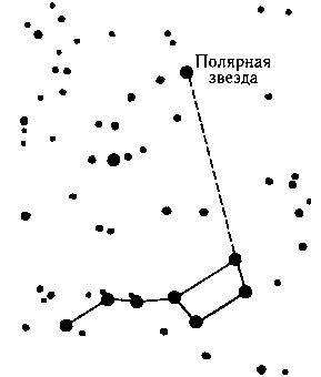 Через две крайние звезды ковша мысленно проводится прямая. На этой прямой откладывается пятикратное расстояние между этими звездами. В конце пятого отрезка и находится Полярная звезда. Если стать лицом к Полярной звезде, то впереди будет север, сзади юг, слева запад, справа восток. Этот способ ориентирования один из самых точных.