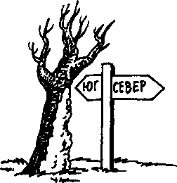 Мхи и лишайники покрывают северную сторону деревьев и камней. Смола больше всего выступает на южной половине ствола хвойного дерева. Муравьи устраивают свои жилища к югу от ближайших деревьев или кустов. Южный склон муравейника более пологий, чем северный.