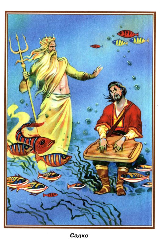 Быть тебе, Садко, моим верным гусляром. Всем твоя игра по душе пришлась. Женись на любой морской девице-красавице, и тебе в моём морском царстве-государстве жить будет лучше, чем в Новгороде. Выбирай себе невесту!