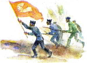 Республиканцы бежали вперёд, а перед ними колыхался на знамени портрет человека с ясными глазами, в косматой бурке.