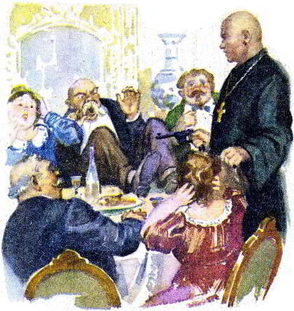 Священник с любопытством оглядывал гостей, рассматривал комнаты, картины, висевшие на стенах, интересовался, как построен дом, велик ли сад вокруг. Это забавляло хозяина, и он всё показал любопытному священнику.