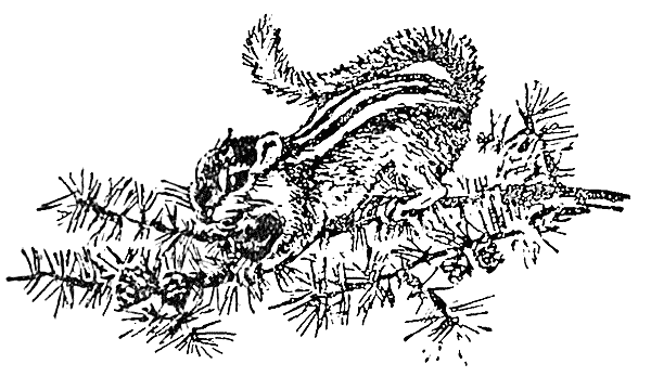 Смотрю, на сосне сучок пошевелился. Да нет, не сучок это, а маленький зверёк. Я ему «фий-ю» и он мне «фий-ю» поздоровались, значит. Всмотрелся я и понял: ведь это бурундук.