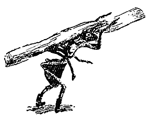 А навстречу ему Муравей-работяга. Ухватил щепку больше себя и еле волочит по земле.