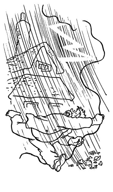 земли, и на другой день староста был весь в синяках от градин (разглядеть, какова их величина, он так и не успел). Вероятнее всего, дядюшка вообще не сдвинулся бы с места, если бы в этот миг не прорезала тьму невиданная молния, осветившая липу, которая раскачивалась над его домом, заламывая ветки, словно руки. Значит, он шел правильно и был на задворках своей усадьбы.