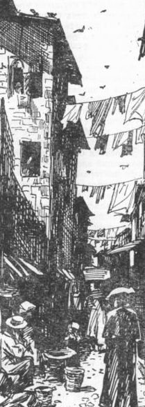 старом ведре, наполненном землею, цвела мясистая агава. И от окна к окну, от балкона к балкону на протянутых через улицу веревках сушилось белье, всякие тряпки и лохмотья, точно флаги, точно эмблема омерзительной нищеты.