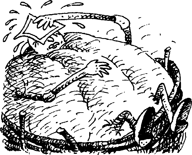 Я спрятался от мышей. Они бы сюда ни за что не забрались. Но я привязался так крепко, что никак не развяжусь. Проклятая верёвка скоро перепилит мой живот пополам. Спасите!