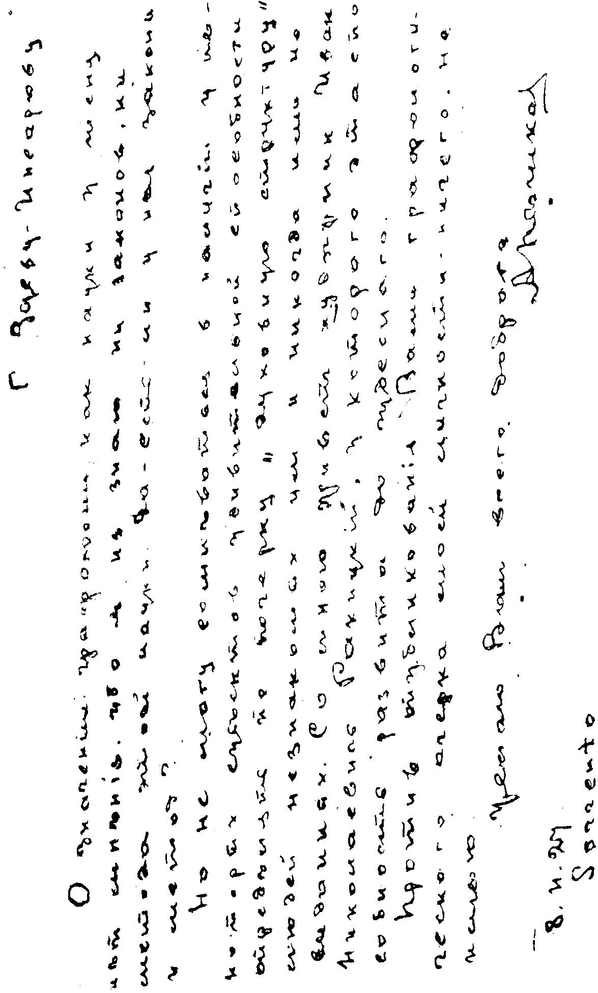 Зуеву-Инсарову."О значении графологии, как науки, у меня нет мнения, ибо я не знаю ни законов, ни методов этой науки. Да есть ли у нее законы и метод?