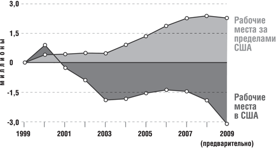 Вот отрезвляющая итоговая цифра: за последние десять лет ведущие американские корпорации вывели за границу более 2,4 миллиона рабочих мест.