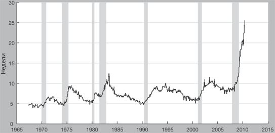 А сейчас взгляните на график длительной безработицы в сегодняшней Америке.