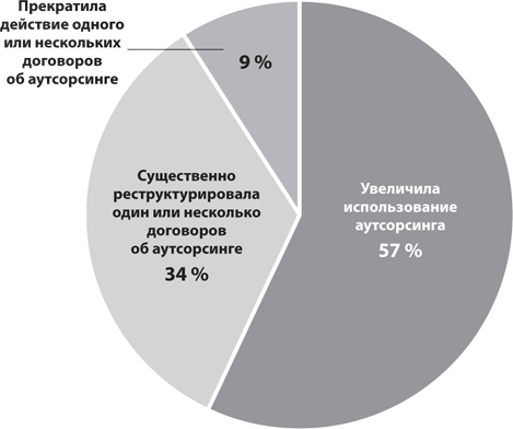 В 2009 году представители многих самых мощных национальных корпораций посетили Конференцию по стратегическому аутсорсингу, чтобы поговорить о том, как переправлять американские рабочие места за океан. Организаторы провели опрос более 70 прибывших на конференцию высших руководителей с целью выяснить, какую линию поведения выбрали их компании в условиях рецессии. Большинство респондентов сказали, что в ответ на спад в экономике их компании увеличили аутсорсинг, и лишь 9 процентов сообщили, что они прекратили действие ряда договоров об аутсорсинге.