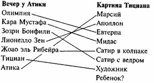 Еще одна красная черта, и игра почти окончена. Однако оставалось уравнение, столь же нерешаемое, как квадратура круга: пять гостей Атики, если не принимать во внимание Тициана, против шести персонажей, участвовавших в казни или наблюдавших за нею. В колонке справа числился еще ребенок.