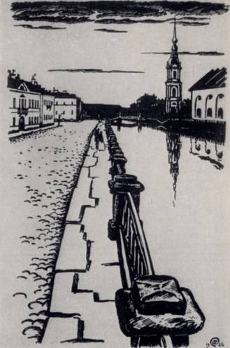 М. В. Добужинский. Иллюстрация к повести Ф. М. Достоевского «Белые ночи». Тушь, перо. 1922 г - илл. 146 б