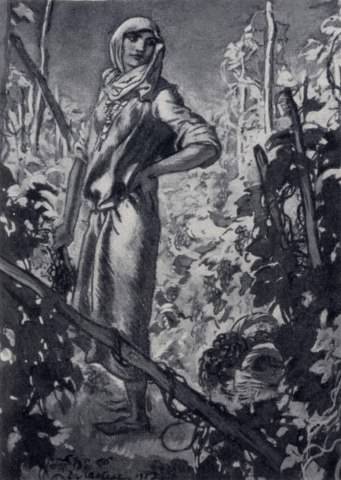 Е. Е. Лансере. Иллюстрация к повести Л. Н. Толстого «Казаки». Акварель. 1917 г. Москва, Музей Л. Н. Толстого - илл. 147 а