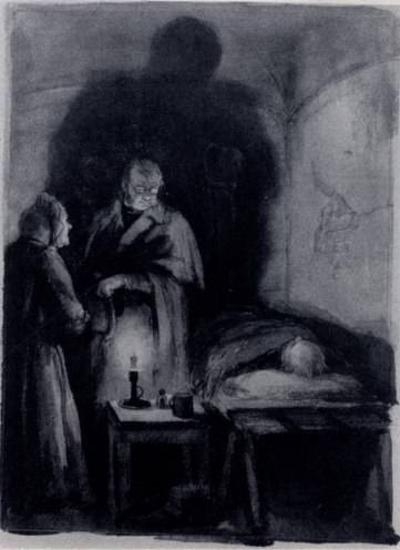 Кукрыниксы. Иллюстрация к повести Н. В. Гоголя «Шинель». Черная акварель. 1952 г. Москва, Третьяковская галлерея - илл. 173 а