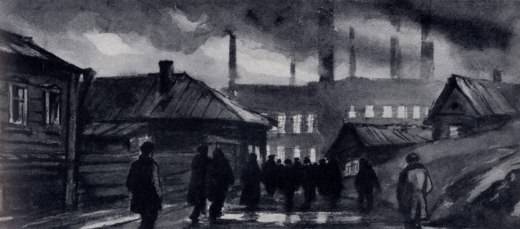 Кукрыниксы. Иллюстрация к роману М. Горького «Мать». Черная акварель. 1950 г. Москва, Третьяковская галлерея - илл. 173 б
