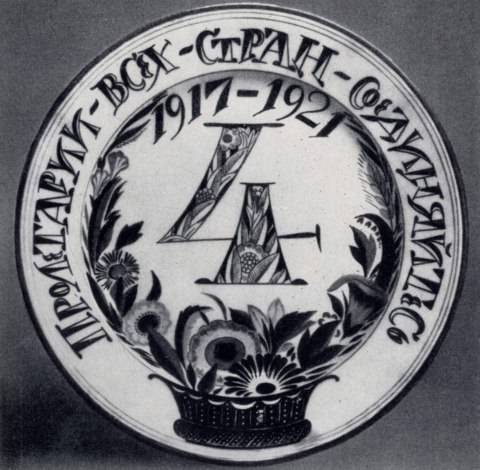 С.В.Чехонин. Юбилейное блюдо «РСФСР». Государственный фарфоровый завод в Петрограде (ныне завод им. М.В.Ломоносова). 1918 г. Москва, Музей керамики в Кускове - илл. 182 а