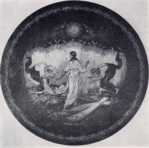 И. В. Маркичев. Декоративная тарелка «Жнитво». 1933 г. Палех, Музей палехского искусства - илл. 185 б