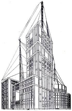 Л.А., В.А. и А.А.Веснины. Конкурсный проект Дворца Труда для Москвы. 1923 г. Перспектива