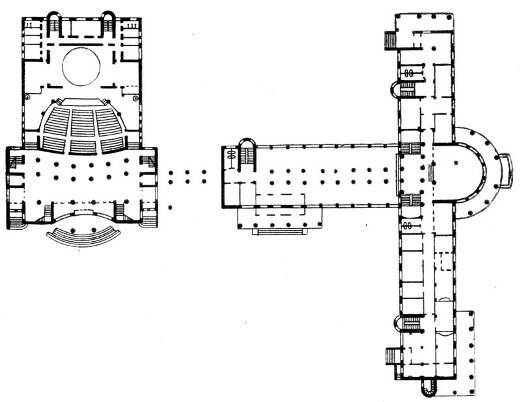 Л.А., В.А. и А.А.Веснины. Дворец культуры автозавода им. И. А. Лихачева в Москве. 1932-1937 гг. План первого этажа