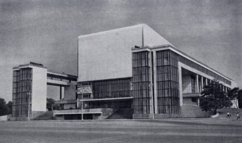 В течение 20 30-х гг. братья Веснины построили в этом духе в Москве много зданий общественного назначения: универмаг на Красной Пресне (1928), здания Института минерального сырья (1924 1926), Дом политкаторжан на улице Воровского (ныне Московский Дом кино, 1930 1933), Дворец культуры автозавода им. И. А. Лихачева (1932 1937) и др. «В этой последней работе, писали в своем творческом отчете А. и В.Веснины, мы стремились найти образ пролетарского дворца культуры, дать простые и ясные формы, благородные соотношения масс, объемов, плоскостей, проемов; в единстве деталей и целого, единстве внутреннего пространства и внешнего оформления дать впечатление спокойной торжественности). Архитекторы умело пользуются здесь приемом пространственного объединения различных помещений, трактованных как самостоятельные объемы, большое внимание уделяют гармоническому архитектурному решению интерьера.