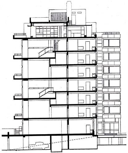 Д.И.Бурдин, Ю.Р.Рабаев. Н.С.Артемьев, А.В.Климов. Гостиница Аэрофлота в Москве. 1964 г. Разрез.