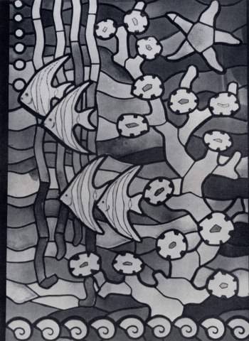 А. Мацкелайте, С.Янкаускайте. Декоративный витраж «Морское дно». Фрагмент. Цветное стекло, монтированное свинцом. 1961 г - илл. 189