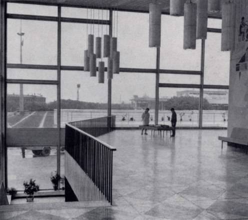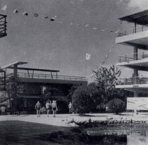 Значительными сооружениями такого рода в СССР являются комплексы гостиниц-пансионатов на мысе Пицунда, Грузинская ССР (коллектив архитекторов под руководством М. Посохина) и на Клязьминском водохранилище под Москвой. Проектирование и строительство этих комплексов весьма характерное явление современной советской архитектуры. В последнее время в наших городах, в районах новостроек, в парках, в курортных местах строится все больше новых гостиниц, пансионатов, ресторанов, кафе, танцевальных залов, выставочных павильонов и других сооружений, в назначении и архитектурном облике которых также отразился современный образ жизни советских людей.
