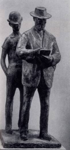 Высоким творческим взлетом отмечено в период до 1958 г. реалистическое искусство скульптора Густава Зейца (р. 1906). (С 1958 г. Зейц работает в Гамбурге, ФРГ). Созданные им портретные образы Г. Манна (1950), А. Цвейга (1952), Б. Брехта (1958), проект памятника К. Кольвиц (1957 1958; все бронза) поражают богатством лепки, сочетанием тонкой психологической характеристики с монументальностью. Большую роль в создании нового немецкого искусства играют также В. Лам-мерт (1892 1957), В. Ховард (р. 1910), Т. Бальден (р. 1904), В. Грцимек (р. 1918). Г. Гейер (р. 1907), Г. Драке (р. 1903). Их творчество говорит о характерном для немецкой скульптуры многообразии индивидуальных стилей, стремлении к остроте пластической формы, лаконизму выражения. Многим мастерам, в том числе и молодым, как В. Ферстеру (р. 1930), присуща любовь к энергичной лепке, к сильным контрастам света и тени, к четкости линейного языка. В мелкой пластике особенно наглядно проявляется тяга художников к лирической теме. Основным направлением скульптуры последних лет является борьба за глубокое решение образа нового человека, за высокое мастерство и совершенство реалистической формы.