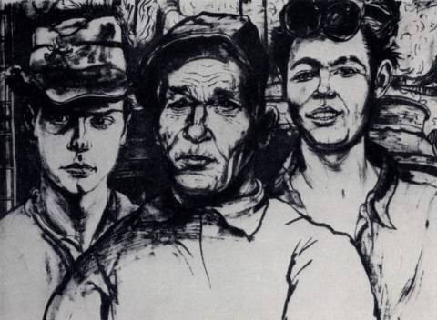 Л. Грундиг. Трое в бригаде. Рисунок. Тушь, кисть. 1961 г - илл. 224 б