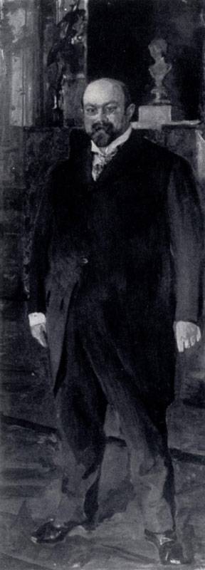 Подобные искания проявились со всей определенностью в портрете фабриканта и мецената М. А. Морозова (1902; ГТГ). Фигура позирующего человека вынесена на первый план, вертикальный формат подчеркивает центральное положение модели. Контур четко обрисовывает грузную фигуру. Поза подчеркнуто некрасива и крайне выразительна в своей характерности. Сугубо индивидуальный, портрет Морозова является портретом-типом, образом буржуа той эпохи. М. А. Морозов был просвещенным фабрикантом, поднявшимся над средним уровнем своего класса. Не случайно в глубине гостиной видны предметы искусства.